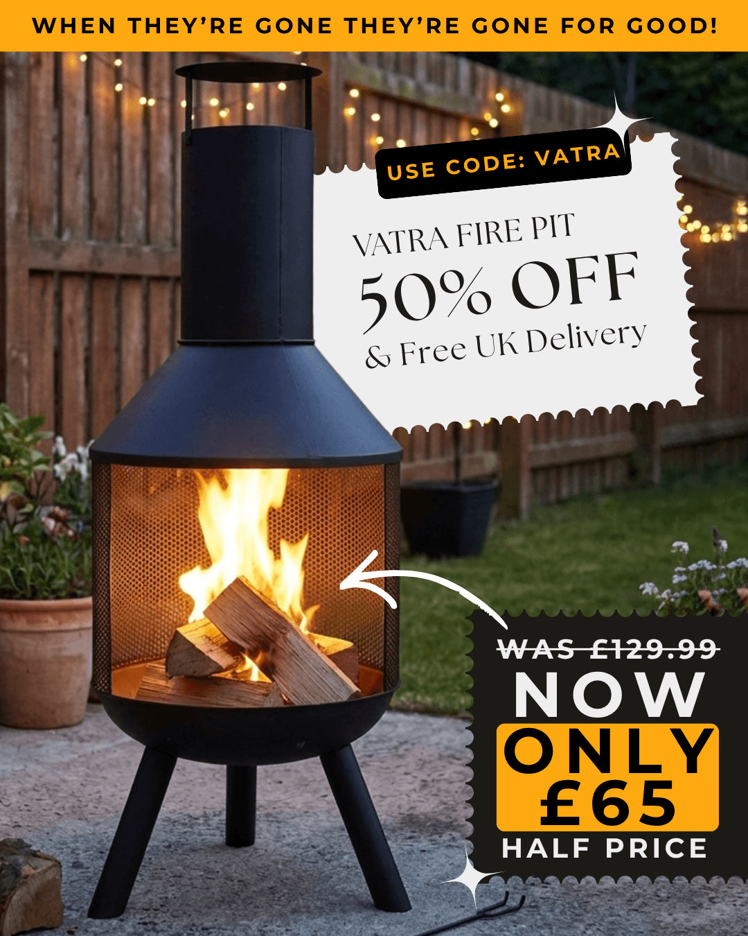Make your garden the place to be, whatever the weather. With 50% off the Vatra Fire Pit (now just £65 with code VATRA), it’s never been easier to stay warm outdoors. Designed with a modern chimney shape, this stylish log burner throws out heat from every angle while drawing smoke up and away - so you can relax in comfort.