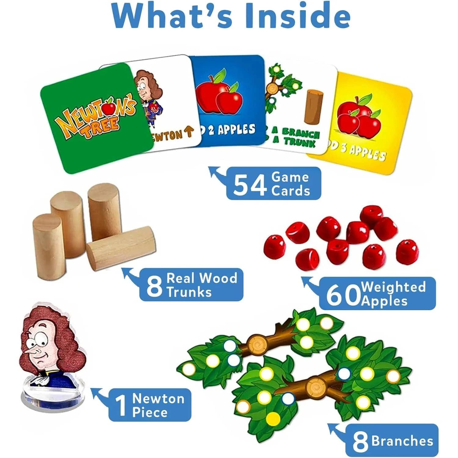 The aim of the Newton's Tree Game is to build the tallest, most stable tree. The last person to successfully add a piece (like an apple, branch, or trunk) without causing the tree to fall wins. Great fun for all the family.