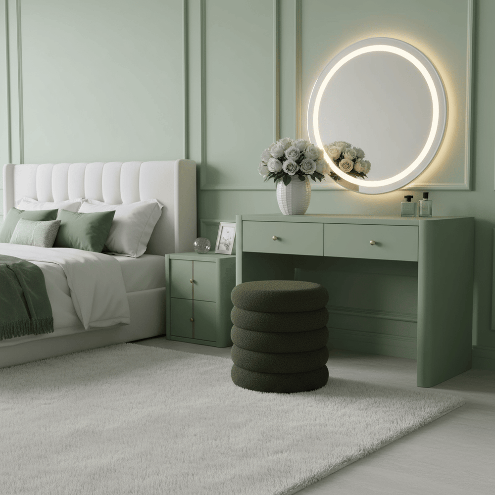 Ribbed Storage Stool Ottoman Plush Round Teddy Padded Seat Bedroom