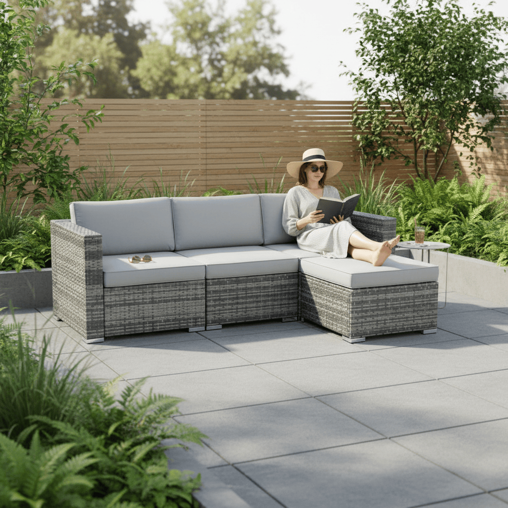 Azuma Monaco 4 Pc Grey Rattan Garden Sofa Set Ottoman Seat