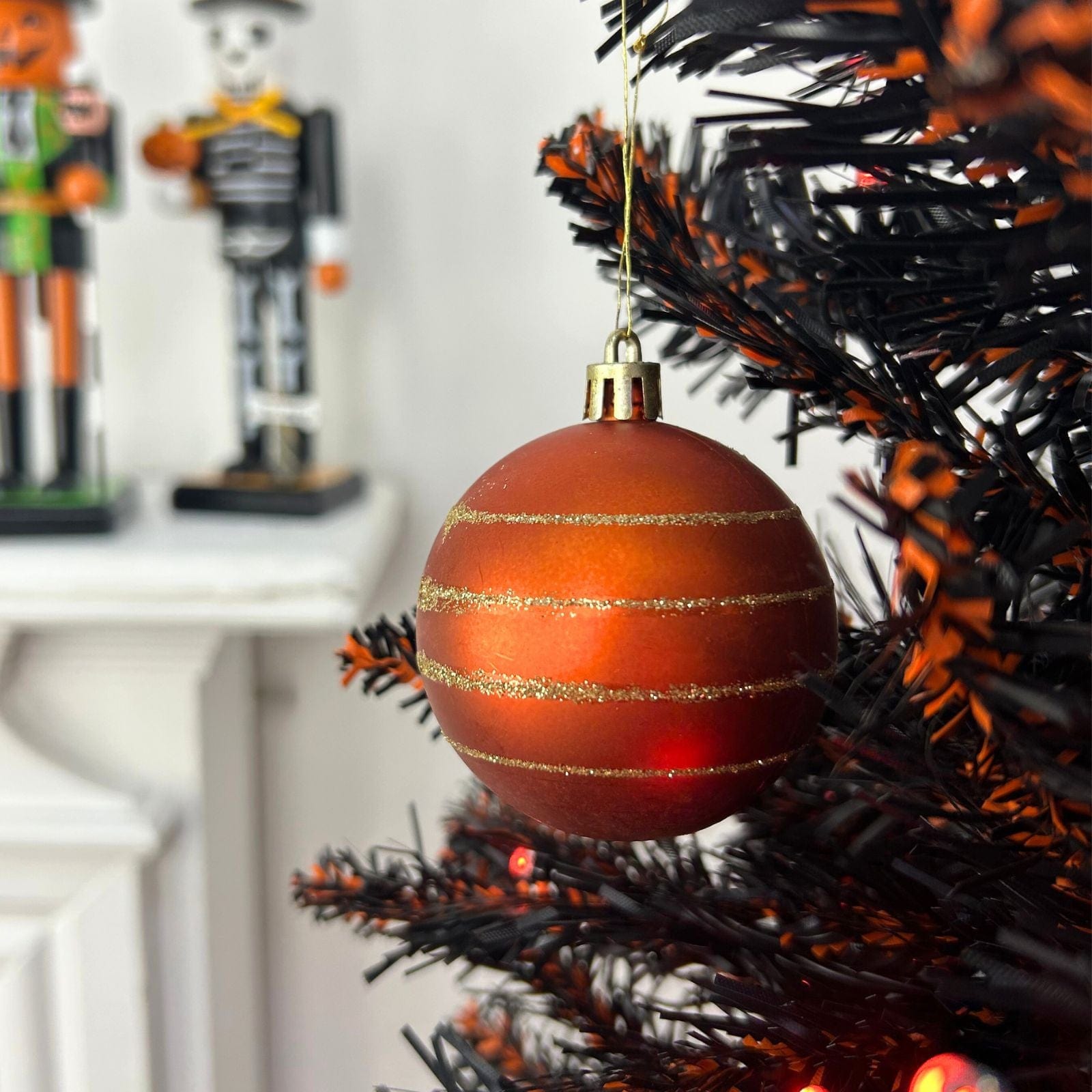 • Pack of 30 medium orange and black baubles for Halloween decoration