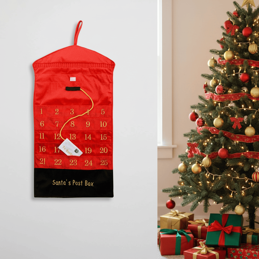 Get in the spirit of Christmas with this fantastic advent calendar. Flat fleece fabric post box design with twenty-five red pockets, numbered for each day of advent. Use it year after year and see your kids faces light up as they use Santa's letter to count down the days till Santa comes! It's a great alternative to chocolate advent calendars. However small chocolates could also be put in the pockets for an extra treat!