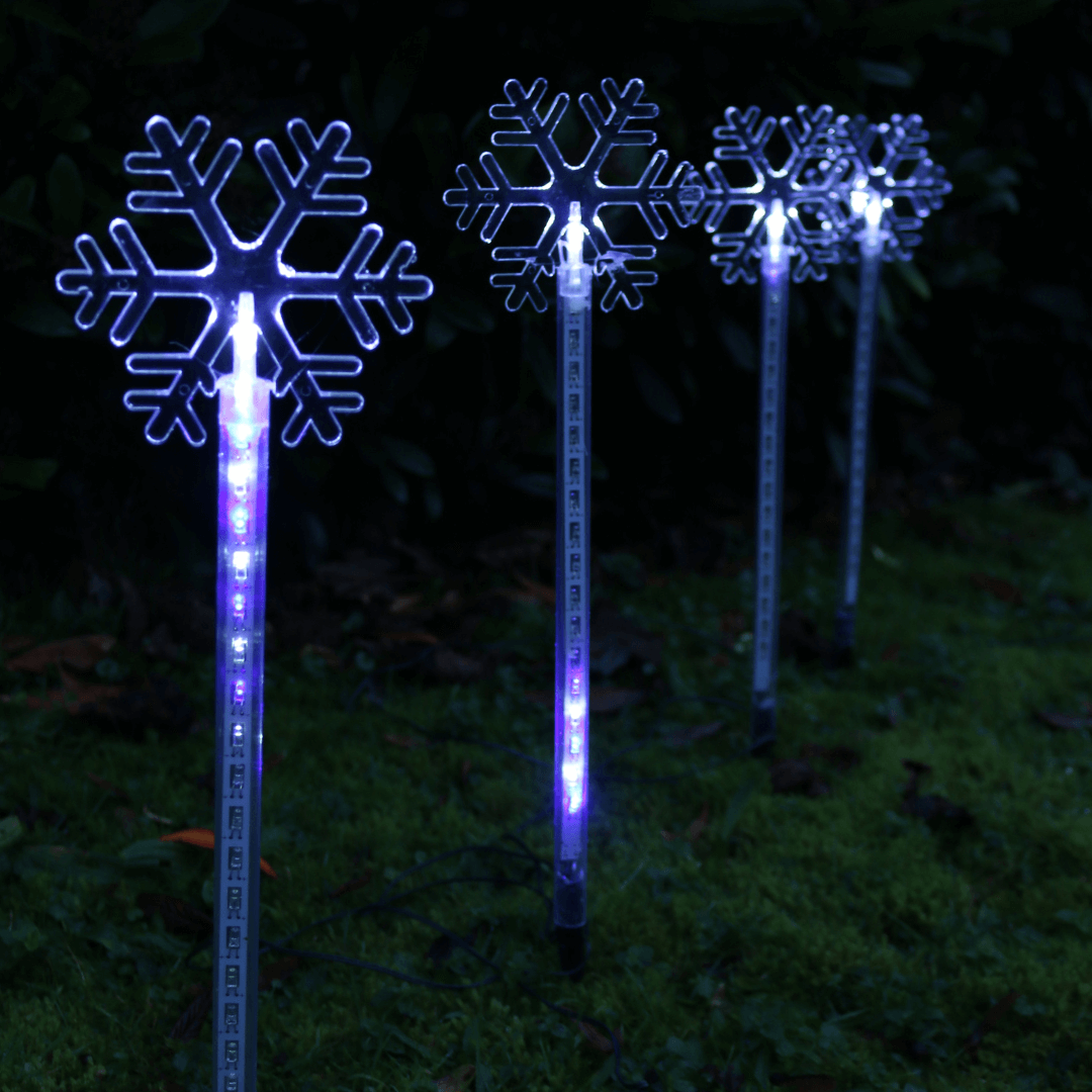 Add some Christmas cheer to the front of your home with XS-Stock's Christmas Pathway Lights. Perfect for adding some twinkly magic to your outdoor space during the festive season, the current collection includes Santa Stop Here Pathway Christmas Lights - great for helping Santa know where to stop this season, and the little ones will love them too! These Christmas lights features a candy cane design with 15 bright white LED lights to illuminate your walkway and the stakes are attached to help secure them into the ground. We also have a stunning Snowflake Pathway Light range; our personal favourites include these Blue & White LED Snowflake Outdoor Christmas Lights. Each 40cm snowflake decoration is lit by bright blue and white led lights and adds a classic touch to your Christmas Lights display. Our Christmas Tree Garden Lighting Stakes are our most popular; these feature a spiral Christmas Tree Design with Green LED lights - great for adding a festive feel to your garden space.