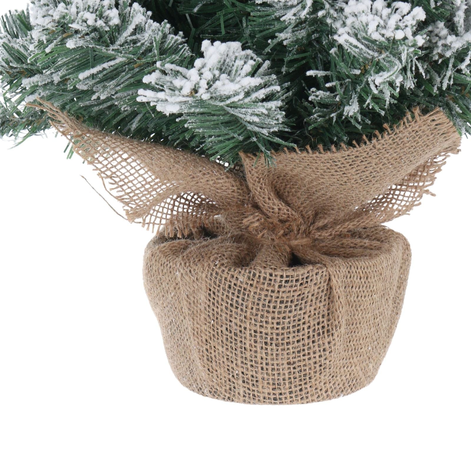 Bring festive charm to any corner of your home with the Mr Crimbo 60cm Small Green Flocked Artificial Christmas Tree. Compact yet beautifully realistic, this mini Christmas tree is perfect for tabletops, office desks, sideboards, bedrooms, or dining room decor. Standing 60cm tall, it’s an ideal choice for adding a seasonal touch to smaller spaces while still creating that magical Christmas feel. The lush green PVC branches feature 89 tips for a full, natural appearance, dusted with a delicate flocked snowy finish to mimic freshly fallen snow. The tree is set in a stylish jute-wrapped base, giving it a rustic, contemporary look that complements both modern minimalist and traditional Christmas interiors. Designed for effortless decorating, this tree looks stunning displayed as is, or can be dressed up with your favourite mini baubles, fairy lights, and ribbons.