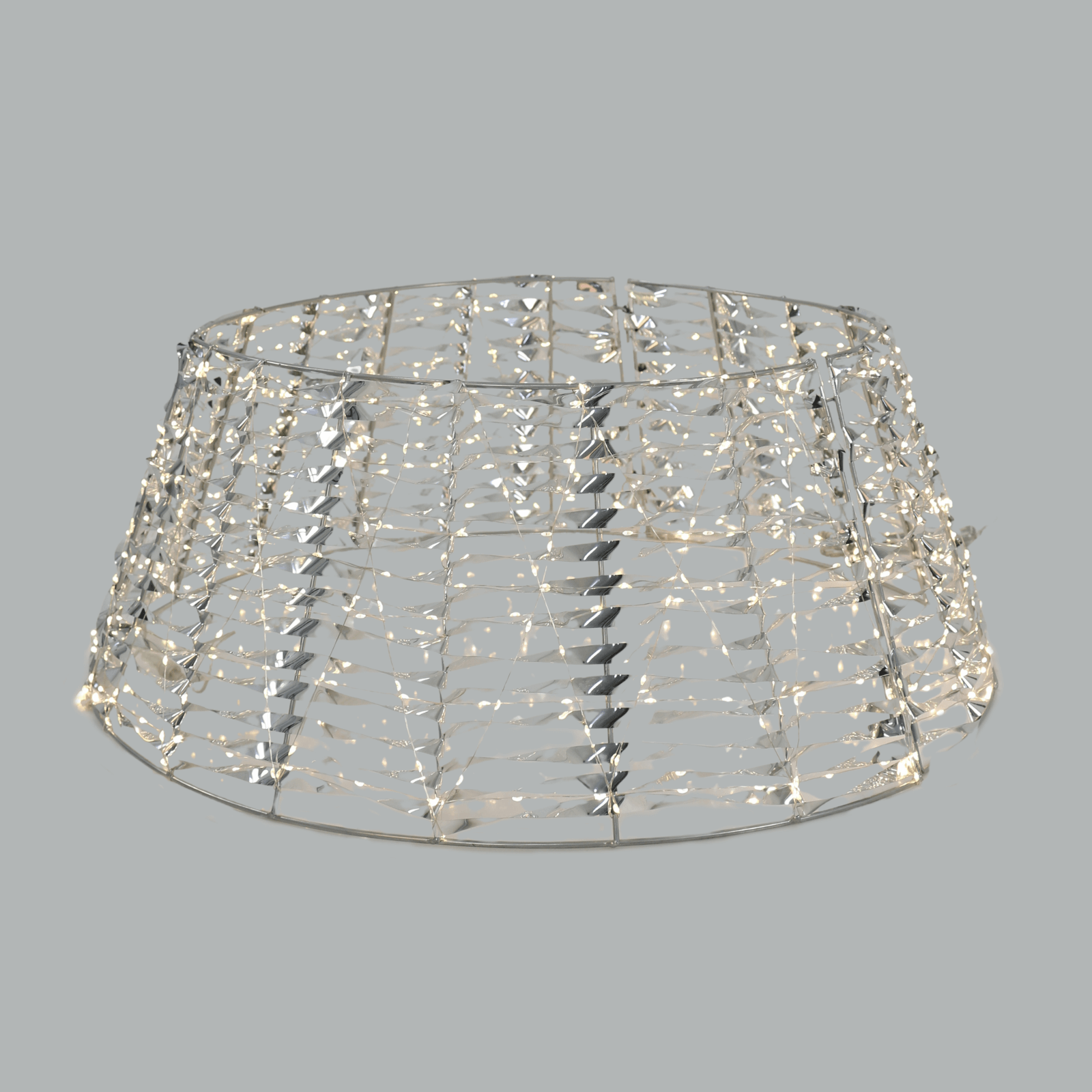 Brighten up your festive decor with the Mr Crimbo Silver Pre-Lit Christmas Tree Skirt. Designed to beautifully disguise the base and stand of your Christmas tree, this statement tree collar transforms a practical necessity into a stunning feature. Crafted with a sturdy metal frame wrapped in shiny silver PET material, it’s illuminated with 600 warm white copper wire LED lights to create a stunning light display from top to bottom. The shimmering glow reflects off the metallic surface for a magical effect that complements both contemporary and traditional Christmas themes. With a built-in timer (6 hours on / 18 hours off), this tree collar offers an effortless festive glow. Quick and simple to assemble in three sections, it’s easy to store and reuse year after year.