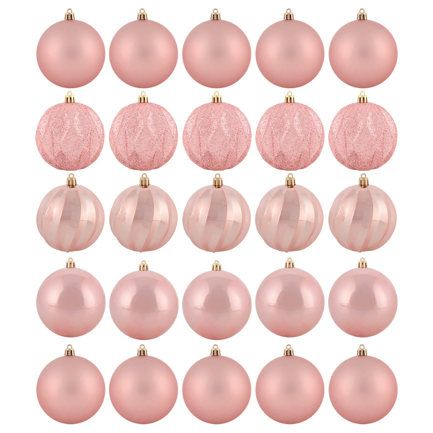 • Pack of 25 large rose pink Christmas baubles for festive decoration