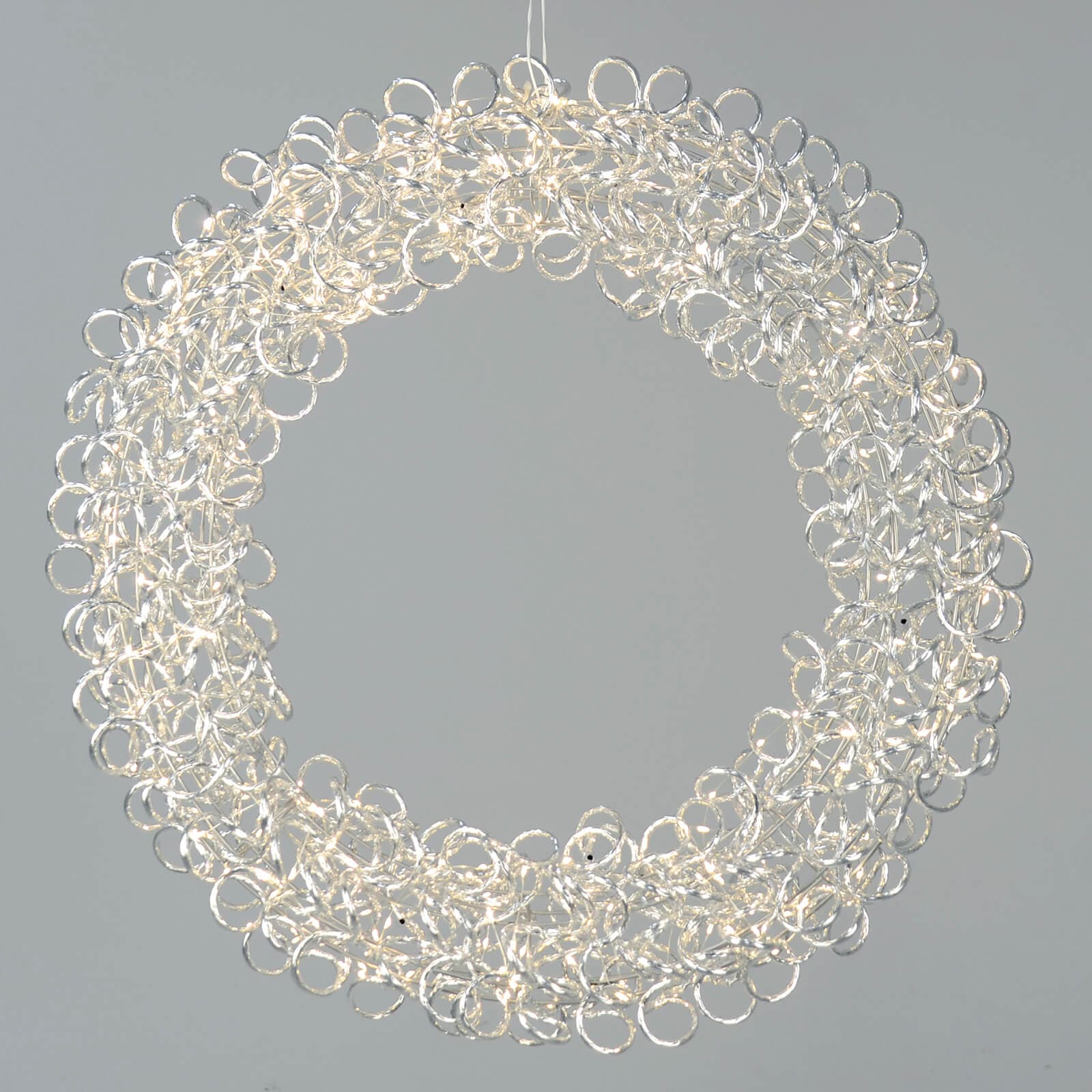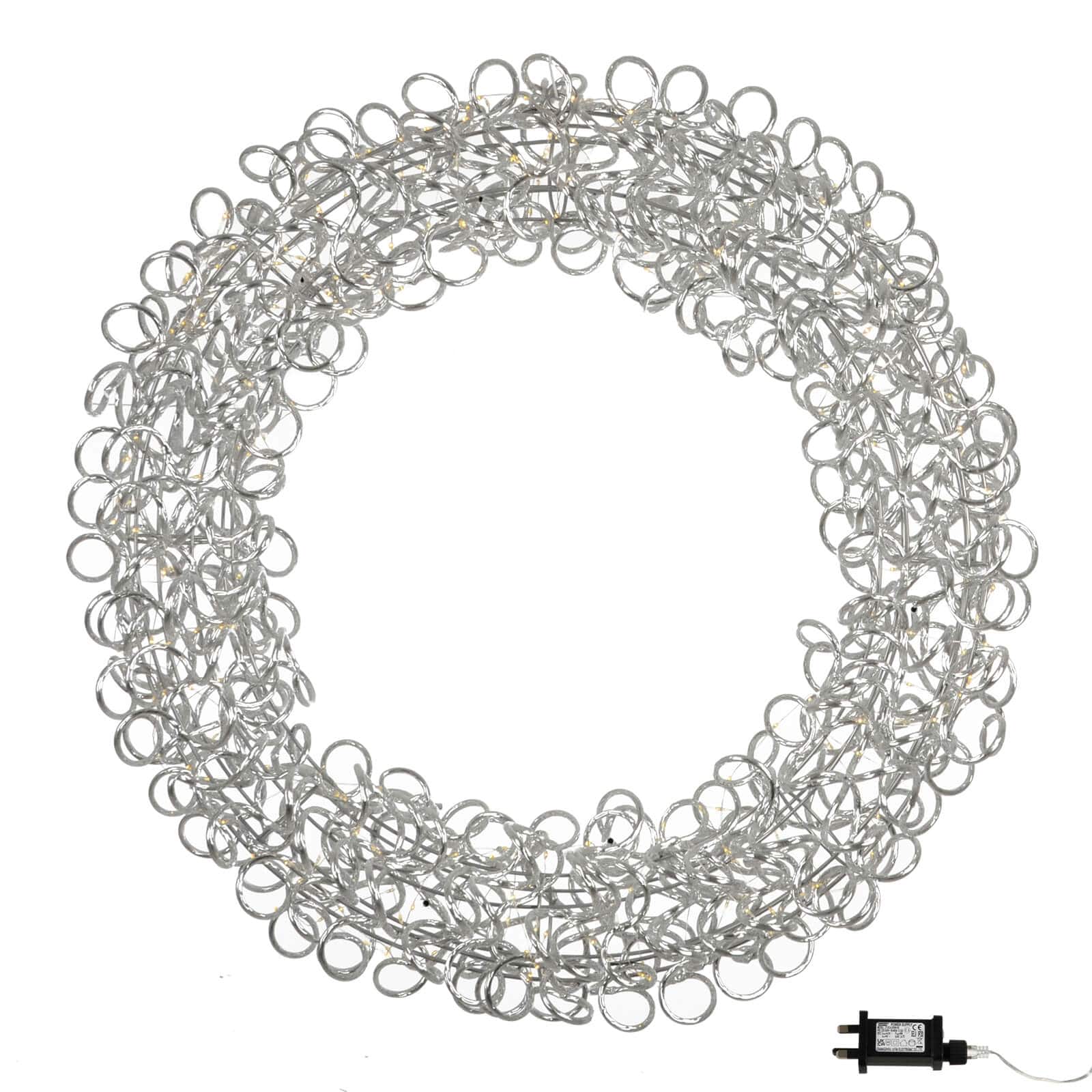 Welcome guests with a statement glow this festive season with the Mr Crimbo 65cm Pre-Lit Silver Aluminium Christmas Wreath. Carefully crafted with a twisted aluminium frame for a modern metallic finish, this elegant wreath is illuminated by 300 warm white copper wire LED lights, creating a radiant yet cosy ambience. Whether styled above your fireplace mantel, on an interior wall, or on your front door in a sheltered position, this oversized wreath instantly transforms your space into a warm and inviting festive setting. With a built-in timer (6 hours on / 18 hours off), it’s low effort and high impact, offering a touch of luxury that can be reused year after year.