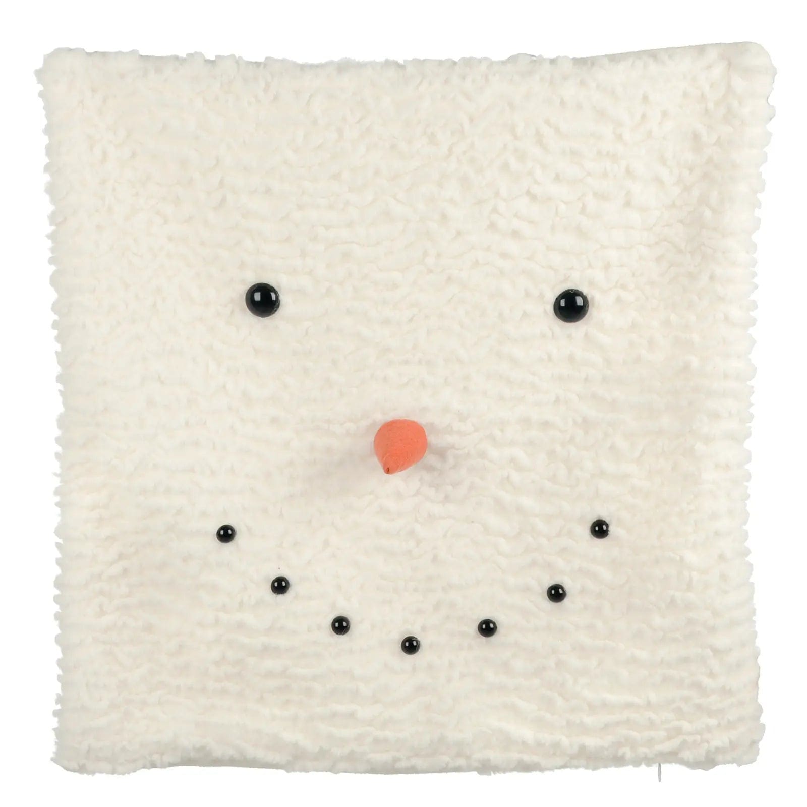 Add some festive cheer to your home with this Christmas Snowman Cushion Cover, made from thick, white Sherpa-style fleece for a soft, luxurious feel. The adorable snowman design features black bead eyes and mouth, and a 3D orange felt nose for a playful touch. Perfect for adding warmth and texture to your sofa or bed during the colder months. Match it with the available Christmas stocking for a coordinated look.