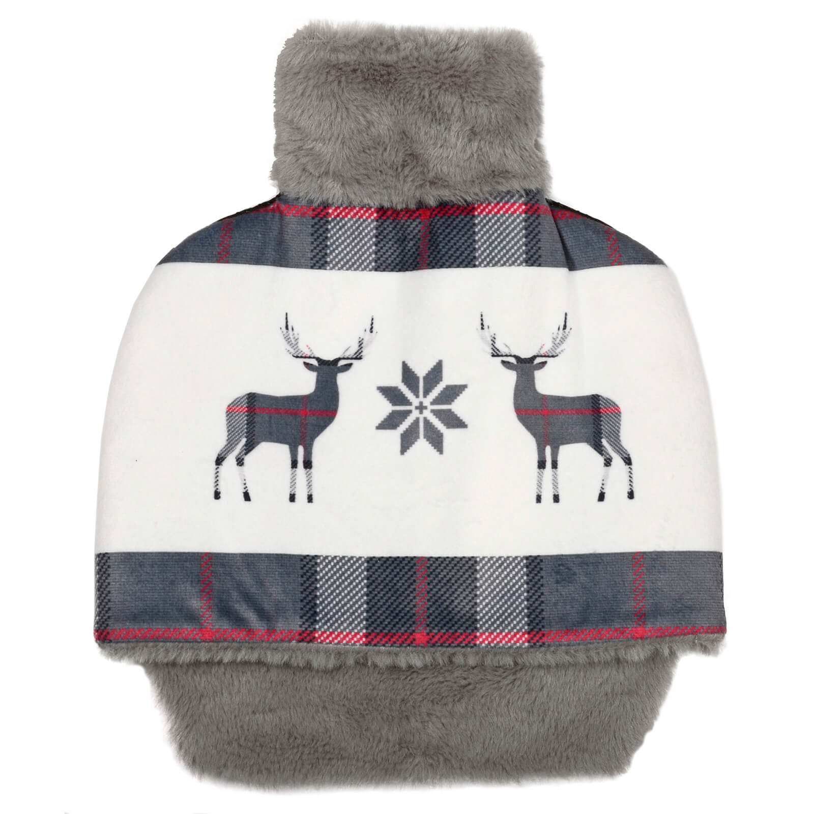 Let this festive design foot warmer slipper from Hodge & Hodge keep your feet warm and cosy at Christmas. Protect your feet from draughts and cold floors with this hot water bottle with single pouch slipper cover. The Christmas design features reindeer and snowflake with tartan border and is made from soft fleece and lined with faux fur for extra warmth. The faux fur neck is open at the top giving you easy access to fill. The underside of the cover has non-slip grips to keep the warmer in place on laminate flooring. Available in a choice of red or grey, the foot warmer is a great gift idea for Christmas.