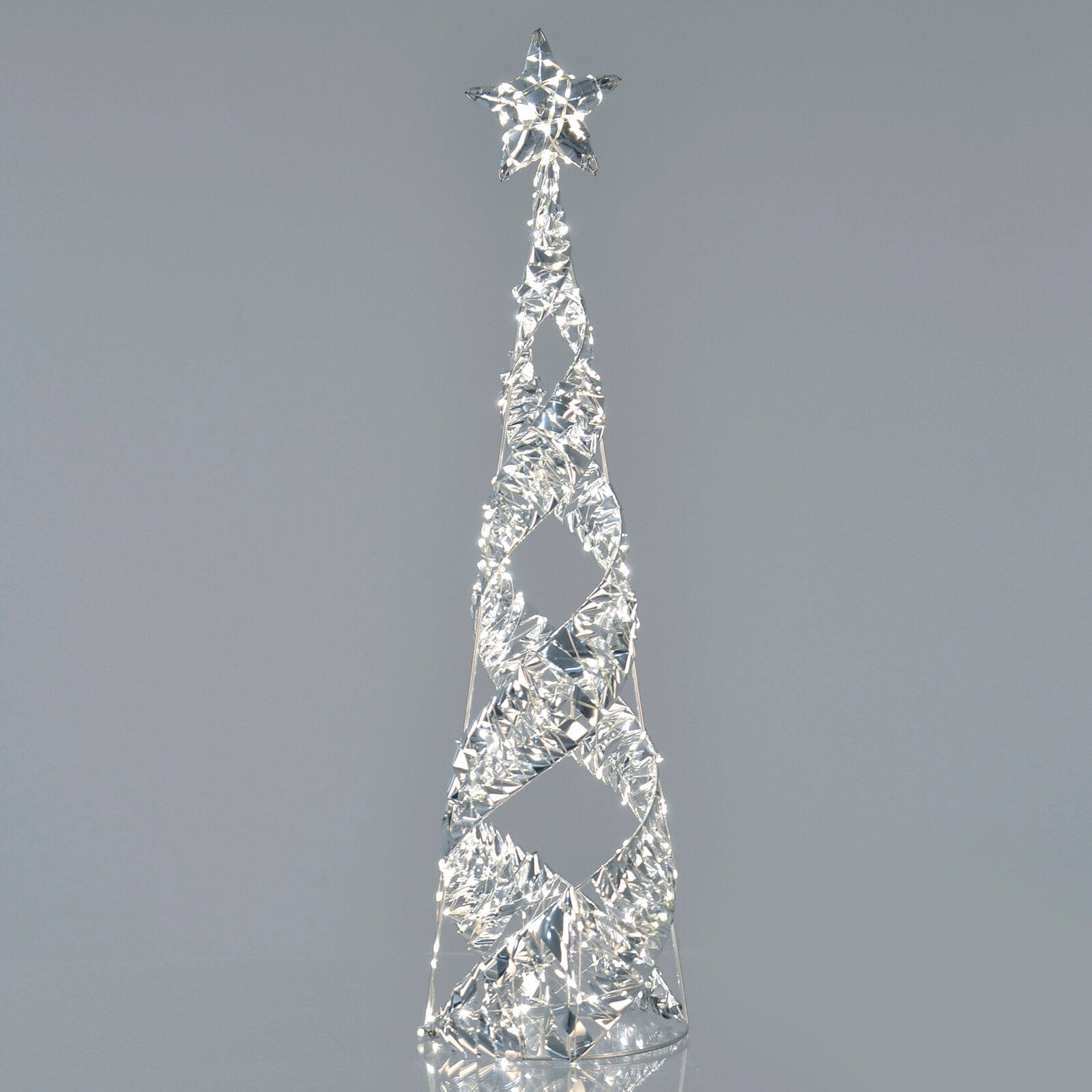 Mr Crimbo 80cm Silver Light Up Spiral Twist Christmas Tree Star Topper