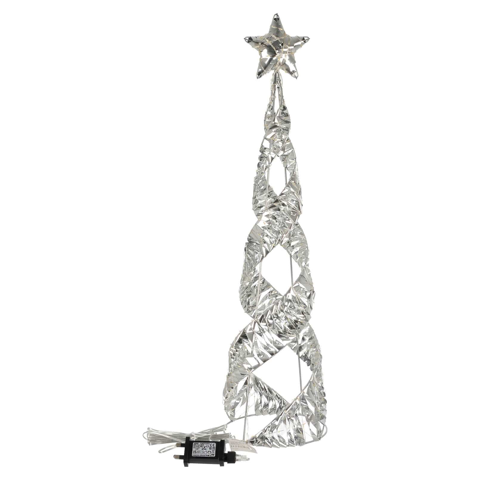 Silver spiral Christmas tree with star topper and power plug