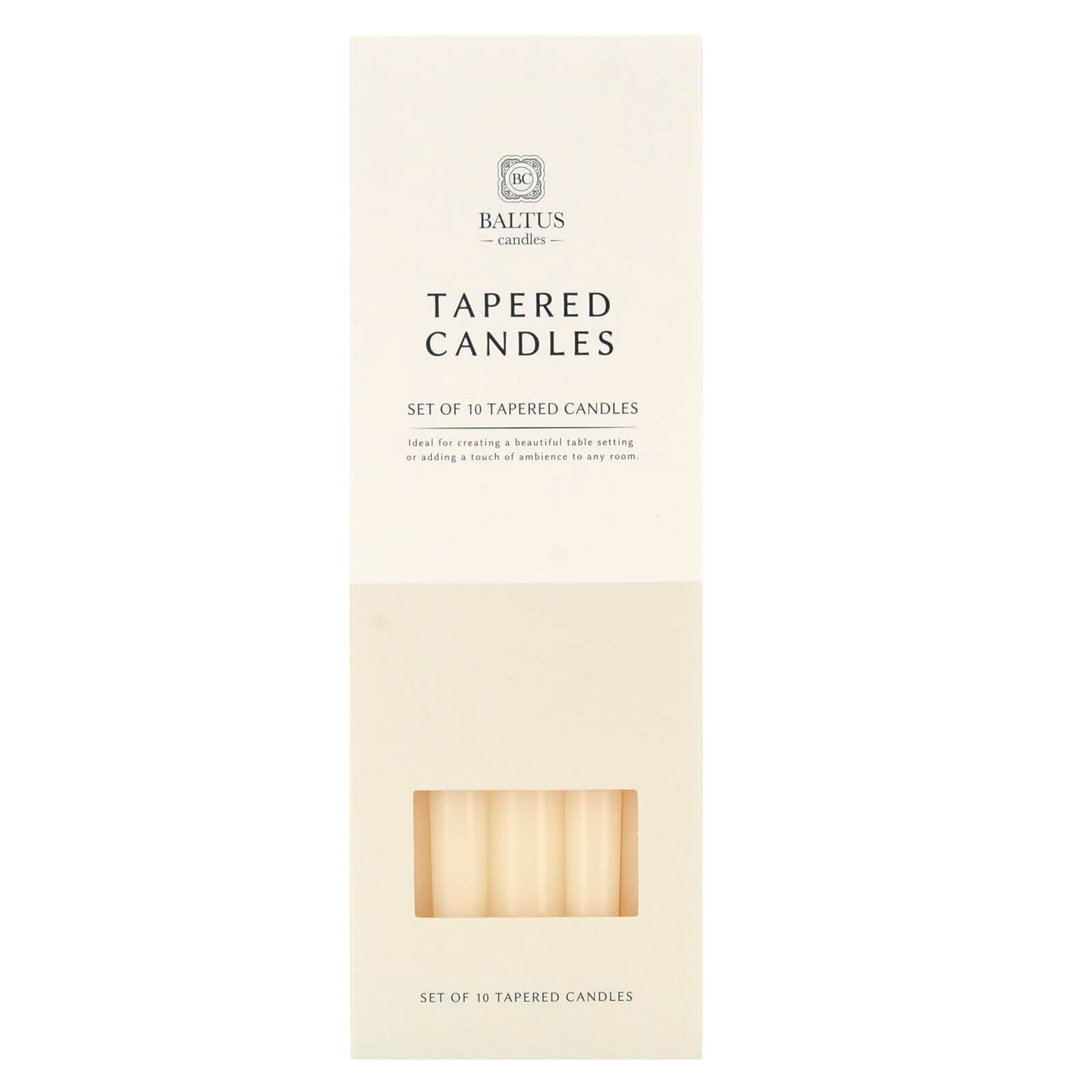 Pack of 10 ivory tapered candles from Baltus brand