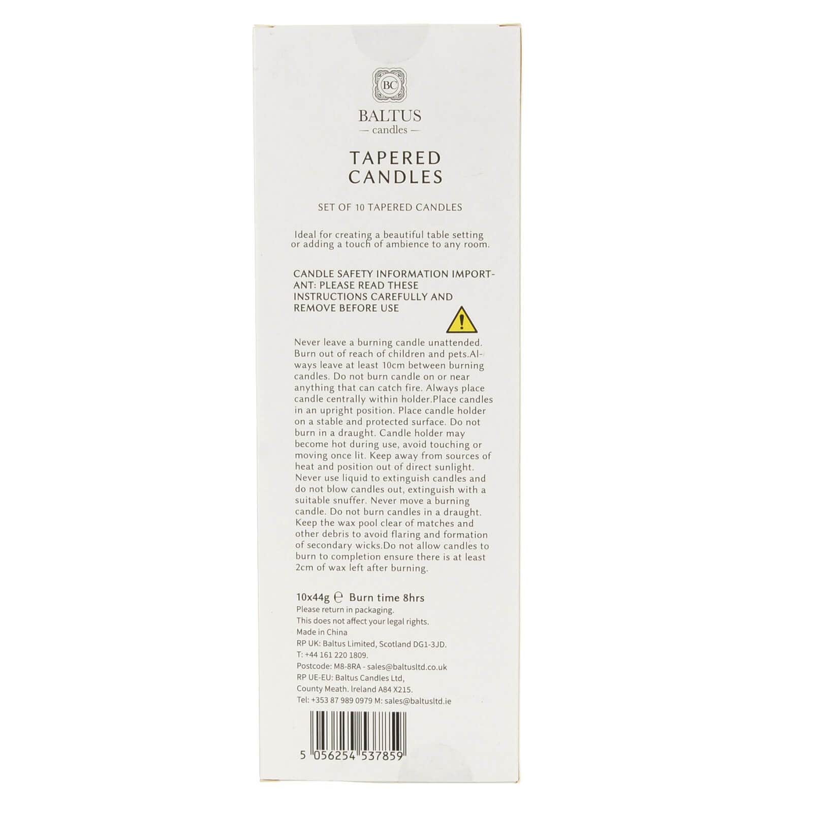 Back of packaging of tapered candles