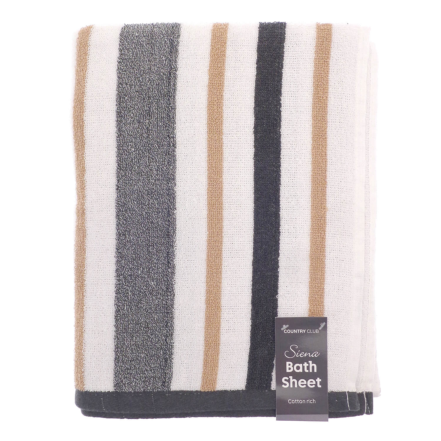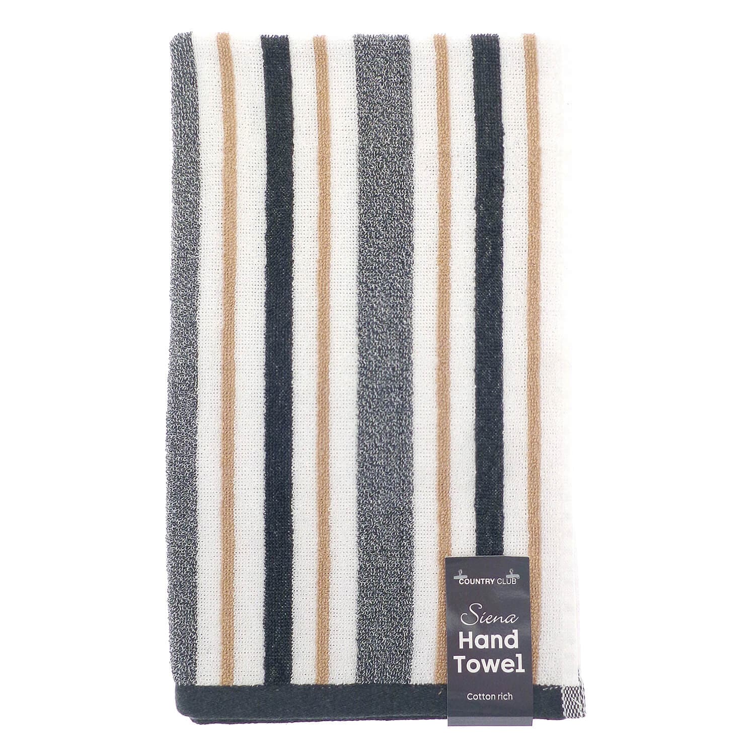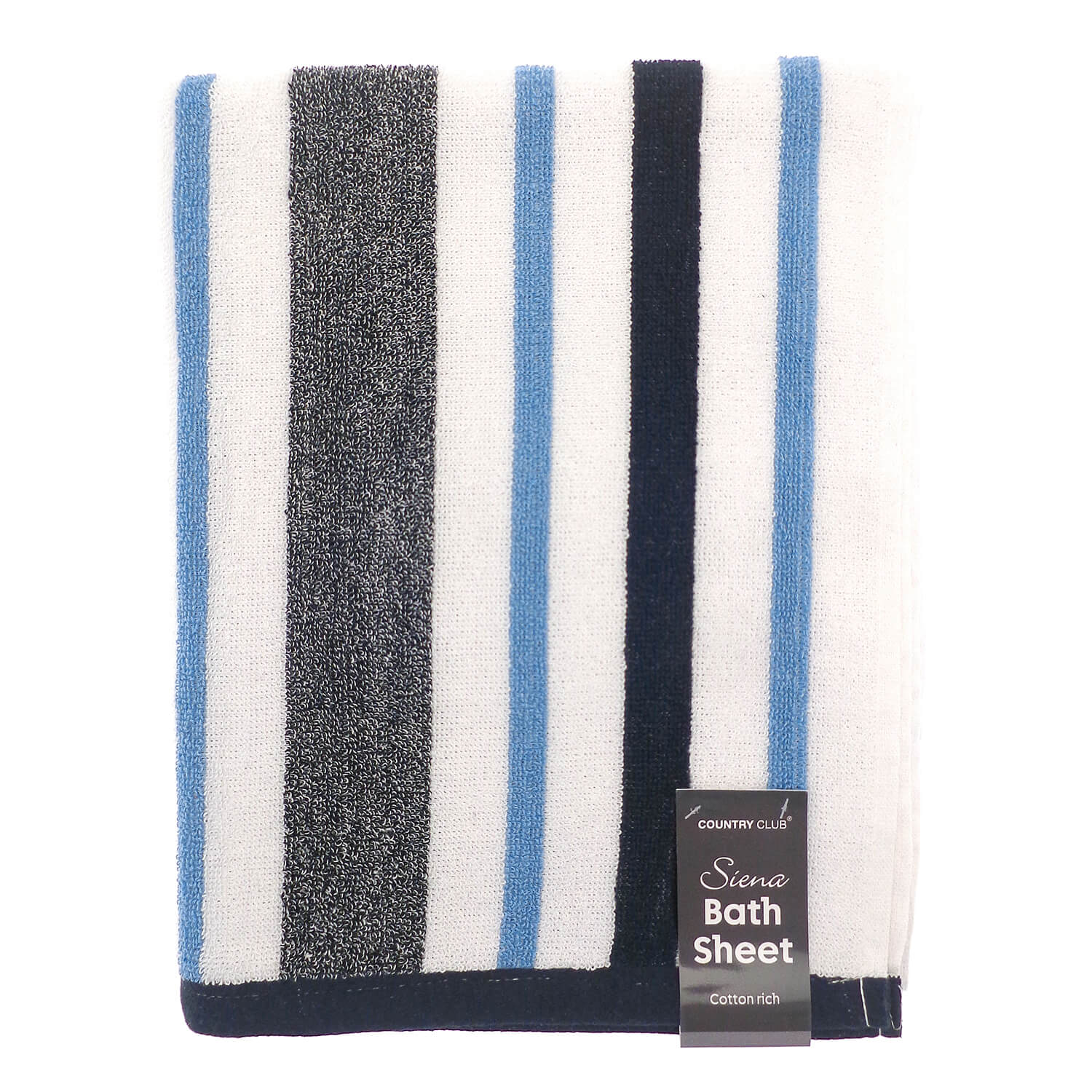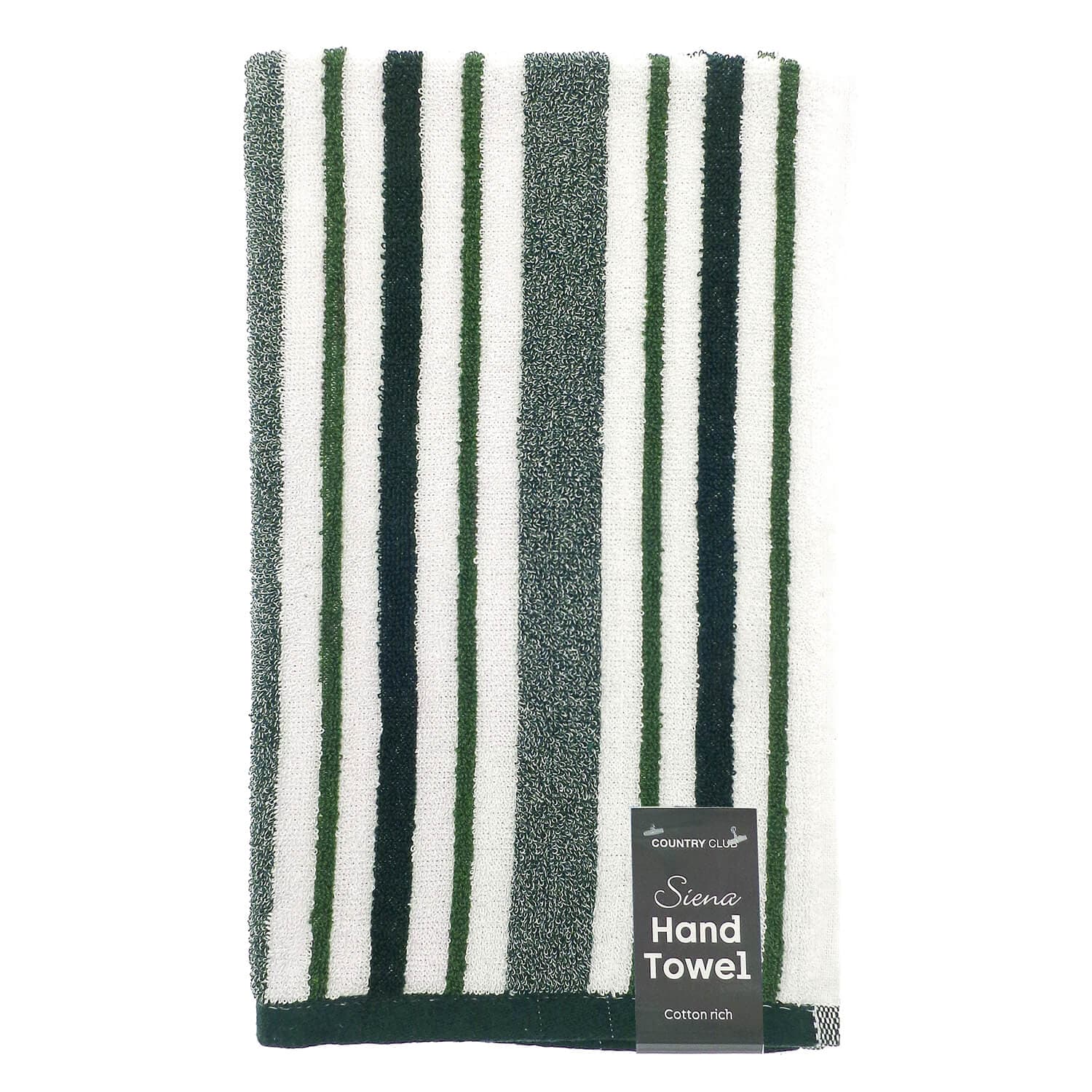 Give your bathroom or shower room a fresh new look with this stylish striped towel from Country Club. The bathroom towel is made from soft cotton rich looped terry towelling material which is comfortable on your skin and highly absorbent for drying after a bath or shower. The striped pattern bathroom towel has a reinforced edge for durability and is available in a choice of green, blue or beige to match most decor. Choose from hand or bath sheet sizes and refresh your bathroom today!